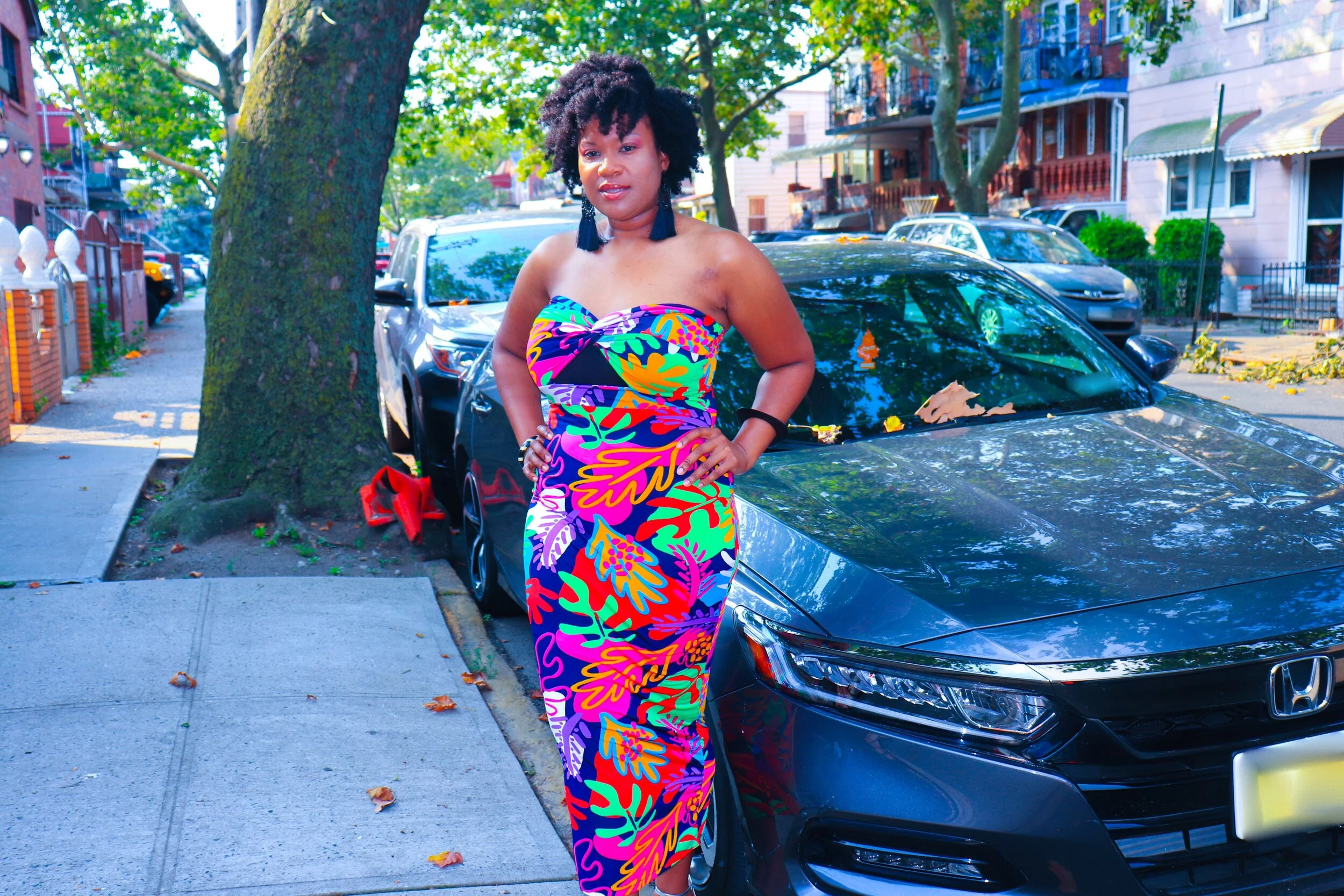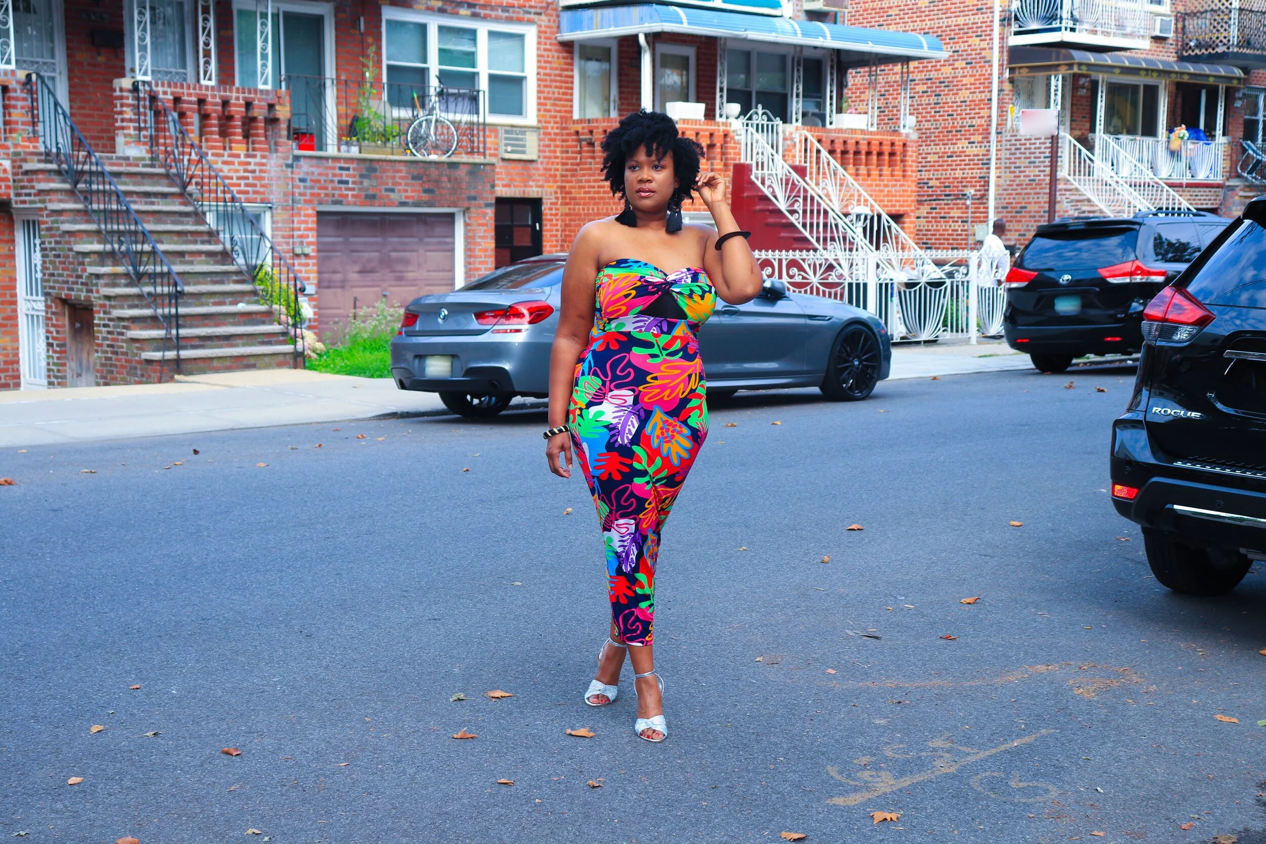 Dress: Gitionline; sandals: Badgley Mischka; earrings: Aldo