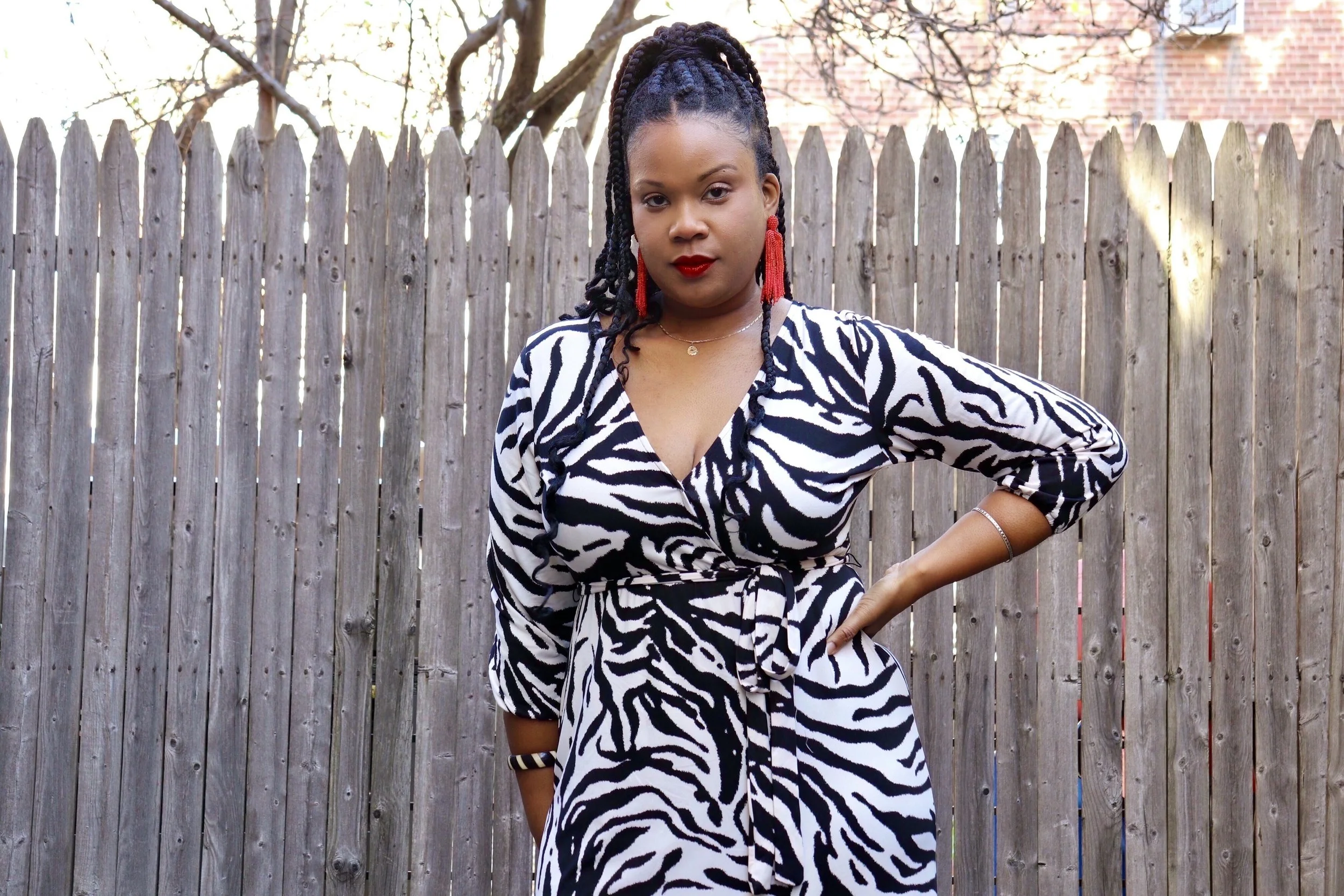 Dress: Velvet Torch; shoes: BCBGeneration; earrings: Amazon