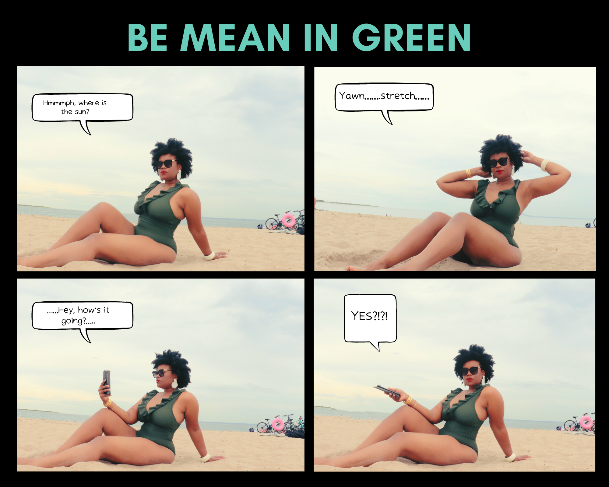Swimsuit: Cupshe; sunglasses: Max Mara; earrings: Amazon